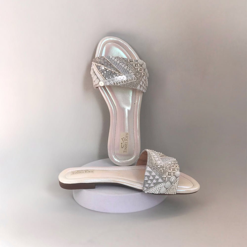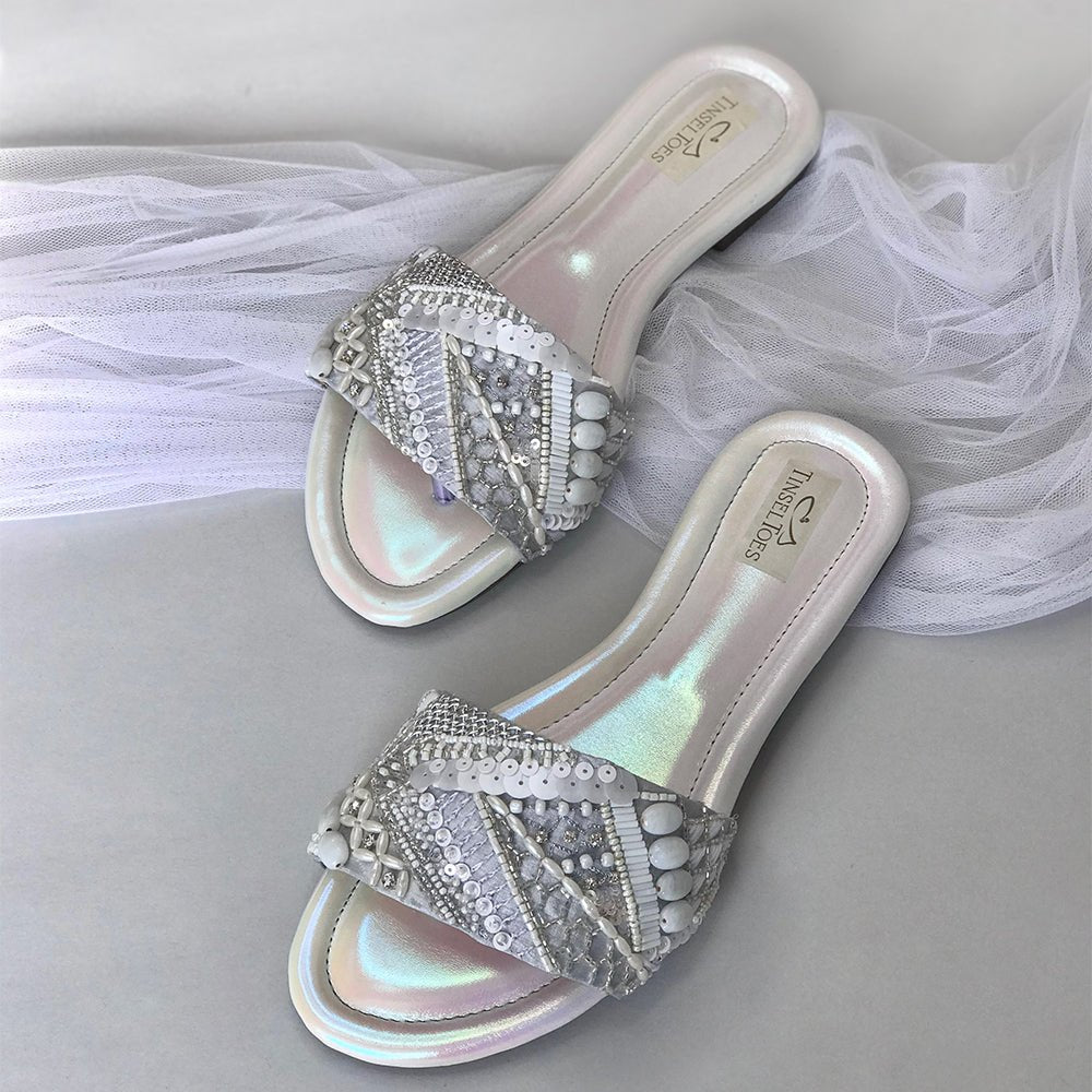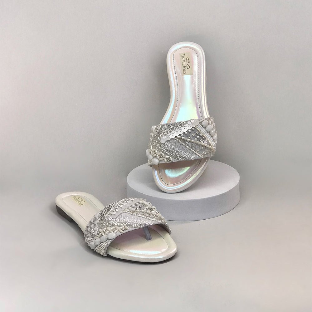 Ever fallen in “love at first sight”.? No matter what you thought, you just had your “stuck by love” moment with our stunning silvery charisma sliders. Adorned with a plethora of embellishments, this pair will be your perfect companion for the best of your moments. The holo-graphic base takes this pair to another level. We can’t wait to see you guys styling in this “new found love” pair. The beautiful colour palette is pretty hard to resist. The midsole is incredibly soft, flexible and stable in every step you take.